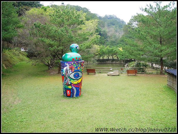 從停車站步入餐廳的途中還會經過一個小湖泊以及這個特別的塗鴉雕槊
