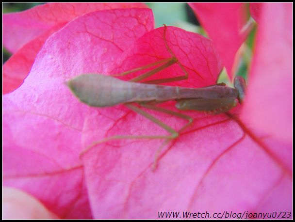 還發現螳螂在花朵上歇息,,,,剛好也讓寧寧認識一下書本上的昆蟲...