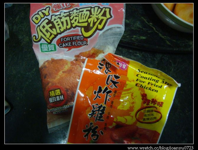 2.麵粉/炸雞粉約1:1調和,炸雞粉加點麵粉炸我覺得比較好吃.醃好的雞丁均勻沾粉下鍋油炸至8分熟撈起.