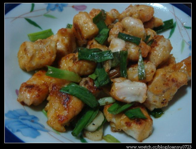 3.蔥蒜切好下鍋爆香 加入油炸好的雞丁拌炒.起鍋時加點胡椒鹽就很夠味.