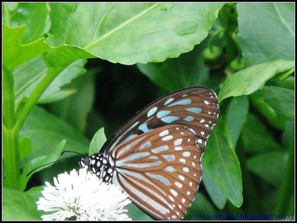 靠近鞦韆這邊有許多美麗的紫斑蝶飛舞著,小Q看到蝴蝶滿臉好奇.