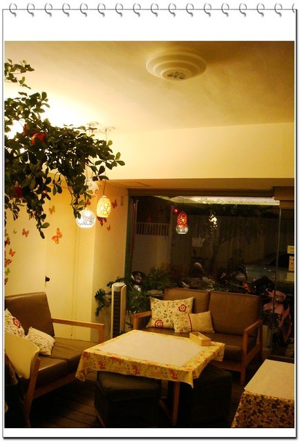 很有居家風的感覺,坐在沙發上悠閒的喝茶吃蛋糕看書好像在家一樣放鬆,店裡那一顆蘋果樹營造了一整個空間的浪漫優閒.