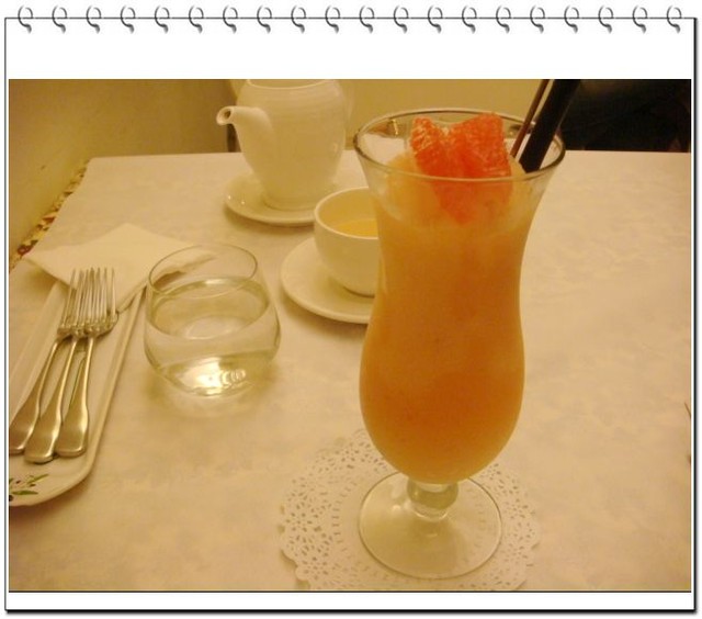 老公點的熱花茶,我點的葡萄柚荔枝冰沙...有水果香有果肉蠻好喝的.