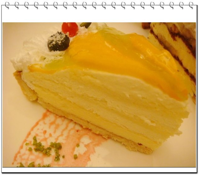 這款應該是芒果哈蜜瓜優格起士塔,因為聽到芒果就想點,用夏日香甜芒果與芳香哈蜜瓜搭配清爽低脂優格慕斯,輕柔綿密起士蛋糕與酥香的塔皮.適合夏日的清爽口感
