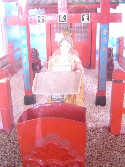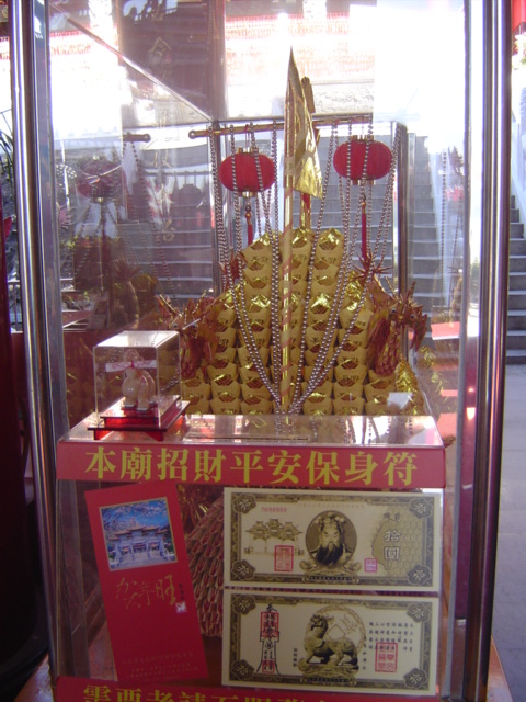 在廟內處處可見一串串的金色風鈴高掛,在豔陽下更顯的耀眼. 許願祈福風鈴NT300我也買了一串,祈求今年心想事成,一切順利.由於關公為武財神所以來求財運的香客也不少,我則是既來之則求之.這個祈求招財天祿開運神鈔NT100,點燃黃金檀香後向關帝君祈求財源廣進.再放入錢包中就會為你帶來好財運.這個黃金檀香有含金粉,感覺真的蠻特別的.不過不管是求什麼我想都是心靈上的,最重要的還是要自己能積極努力才能心想事成的.走到廟門口望向前方的日月潭水波光粼粼真的好美,接下來我們就往就往日月潭風景區方向前進了.